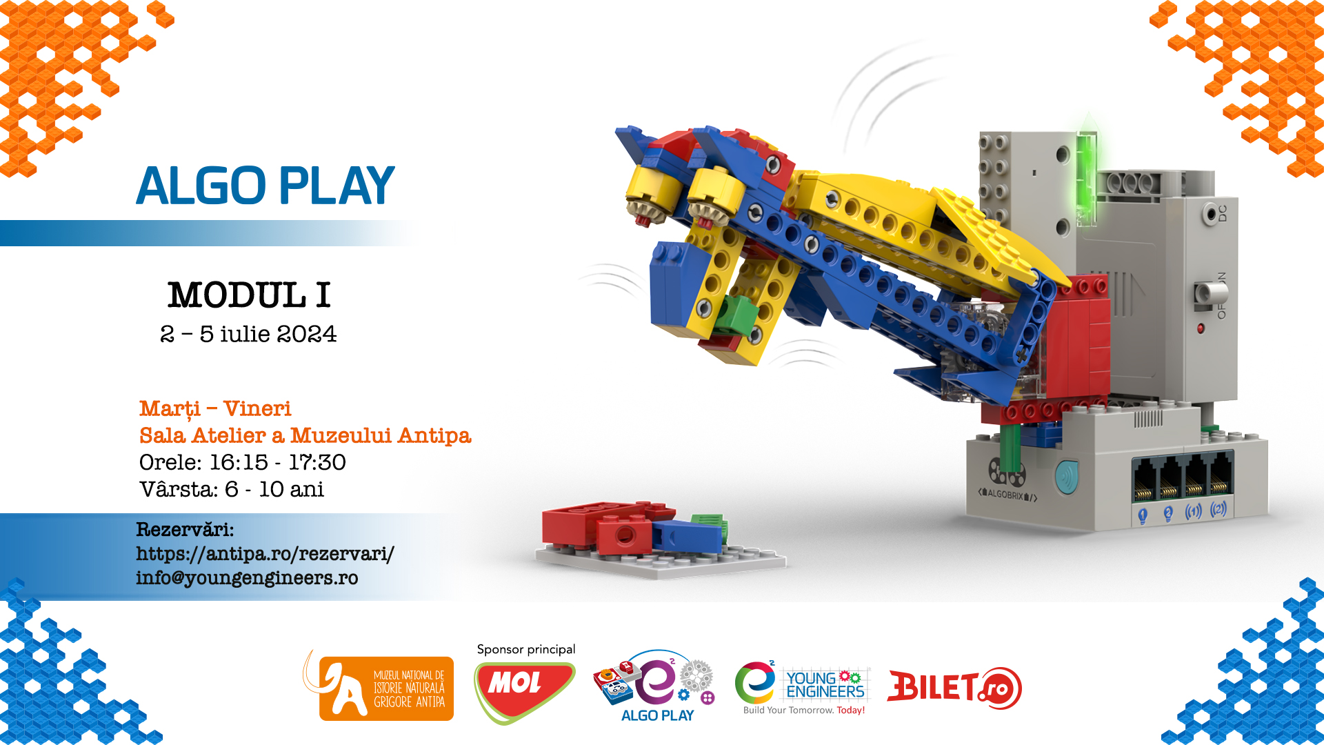 Muzeul Național de Istorie Naturală „Grigore Antipa” și e² Young Engineers vă propun un nou program educațional de inginerie mecanică și robotică cu lego pentru copii: ALGO PLAY!