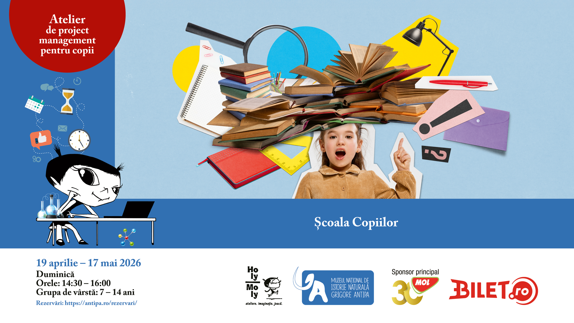 Muzeul Național de Istorie Naturală „Grigore Antipa”, în parteneriat cu Holy Moly, îi invită pe copiii cu vârste între 7 și 14 ani la noua ediție a proiectului „Project Management pentru Copii”, cu tema: „Școala Copiilor”.