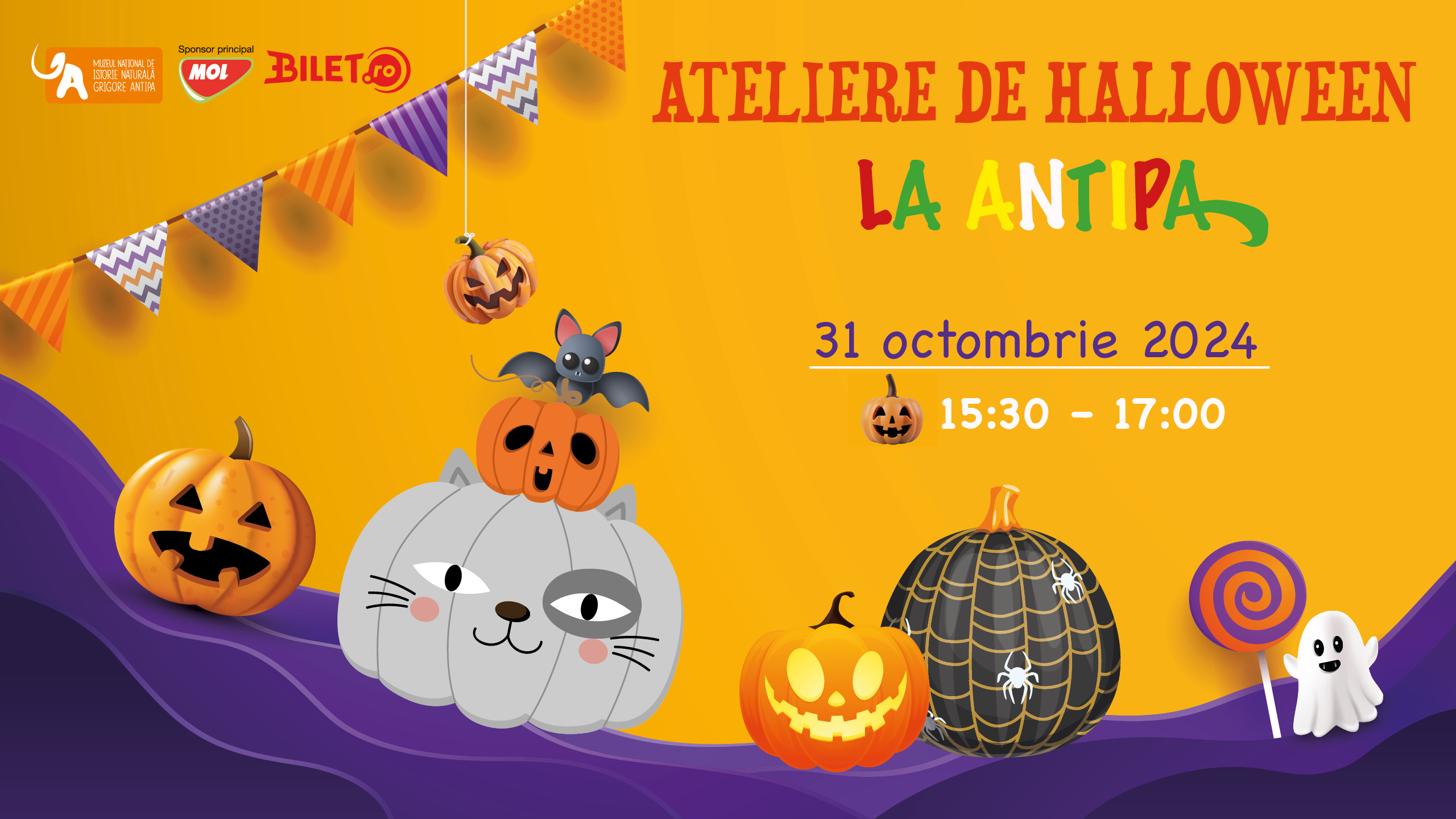 Muzeul Național de Istorie Naturală „Grigore Antipa” îi invită pe cei mici la atelierele de Halloween, ce vor avea loc joi, 31 octombrie 2024, în trei sesiuni speciale: 10:30 – 12:00, 13:00 – 14:30 și 15:30 – 17:00, în Sala Atelier de la etajul muzeului!