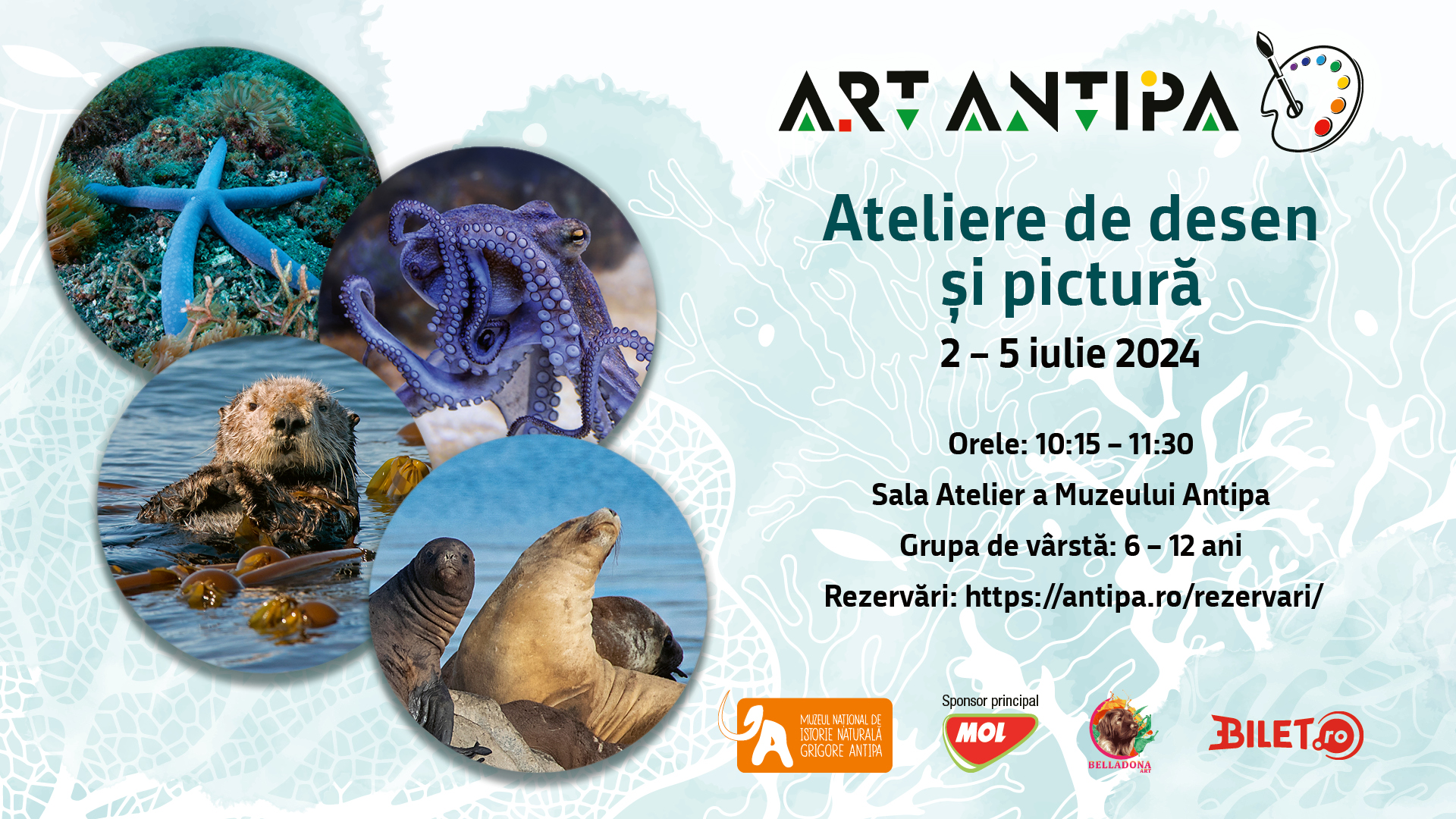 Muzeul Naţional de Istorie Naturală „Grigore Antipa” și Belladona Art vă invită să-i aduceți pe copii la o întâlnire cu arta în cadrul Atelierelor de vacanță Art Antipa 2024.