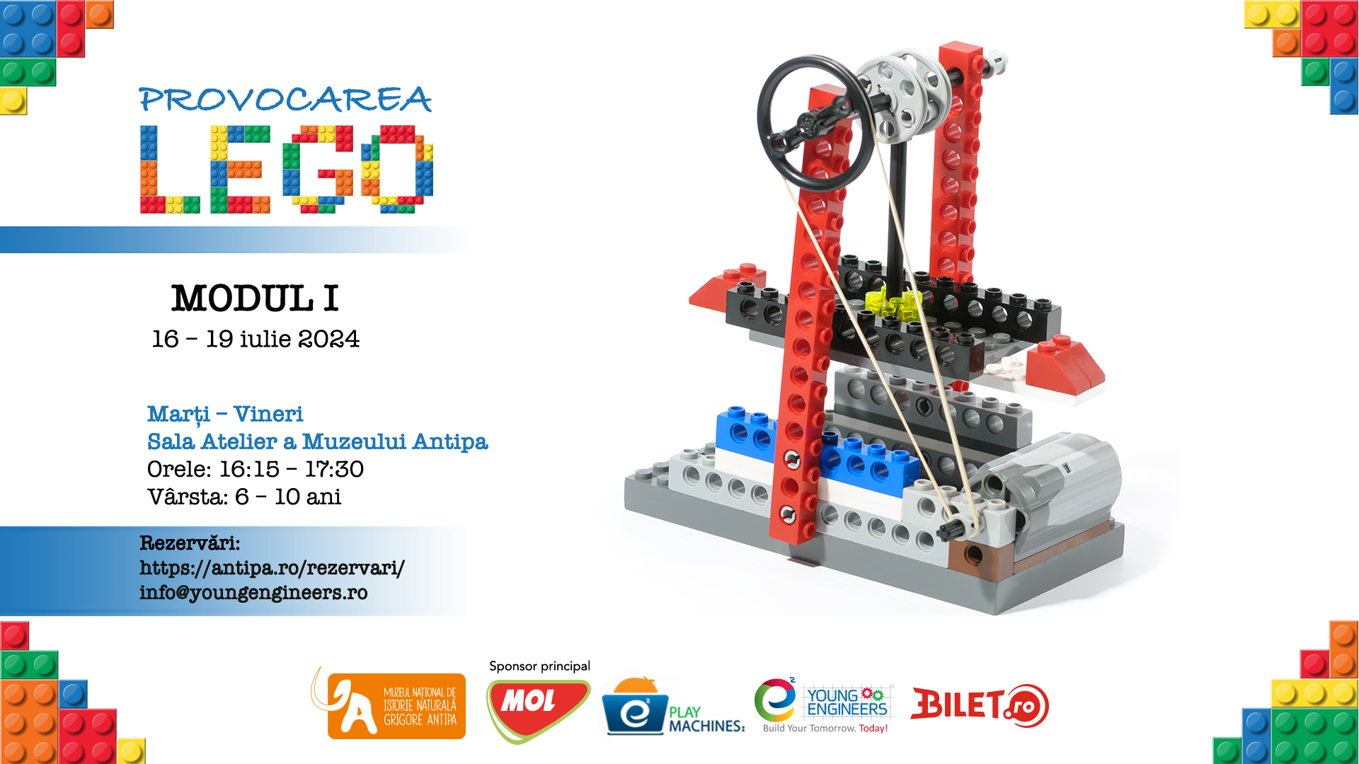 Atelierele de vacanță Provocarea LEGO se desfășoară de marți până vineri, în Sala Atelier a Muzeului Antipa.