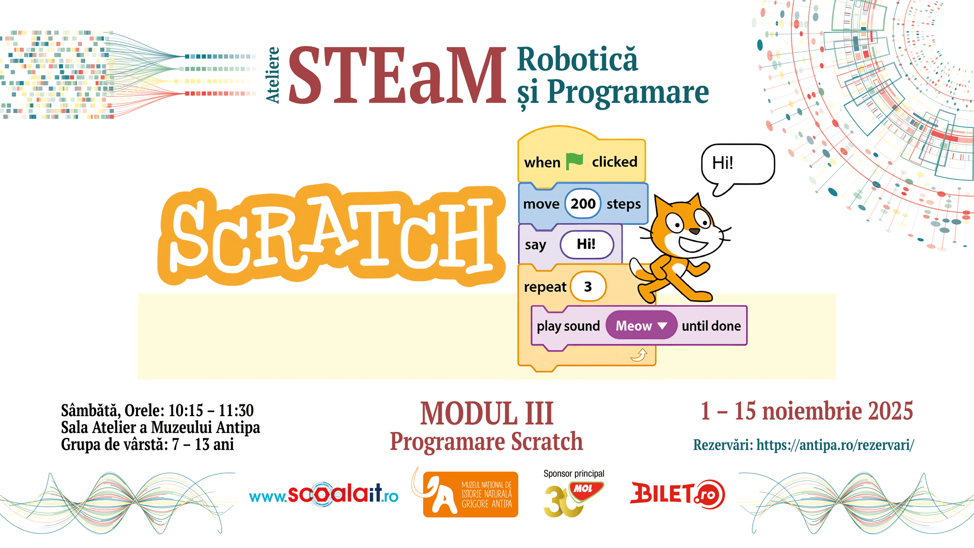 • Modul III – Programare Scratch (1 – 15 noiembrie 2025).