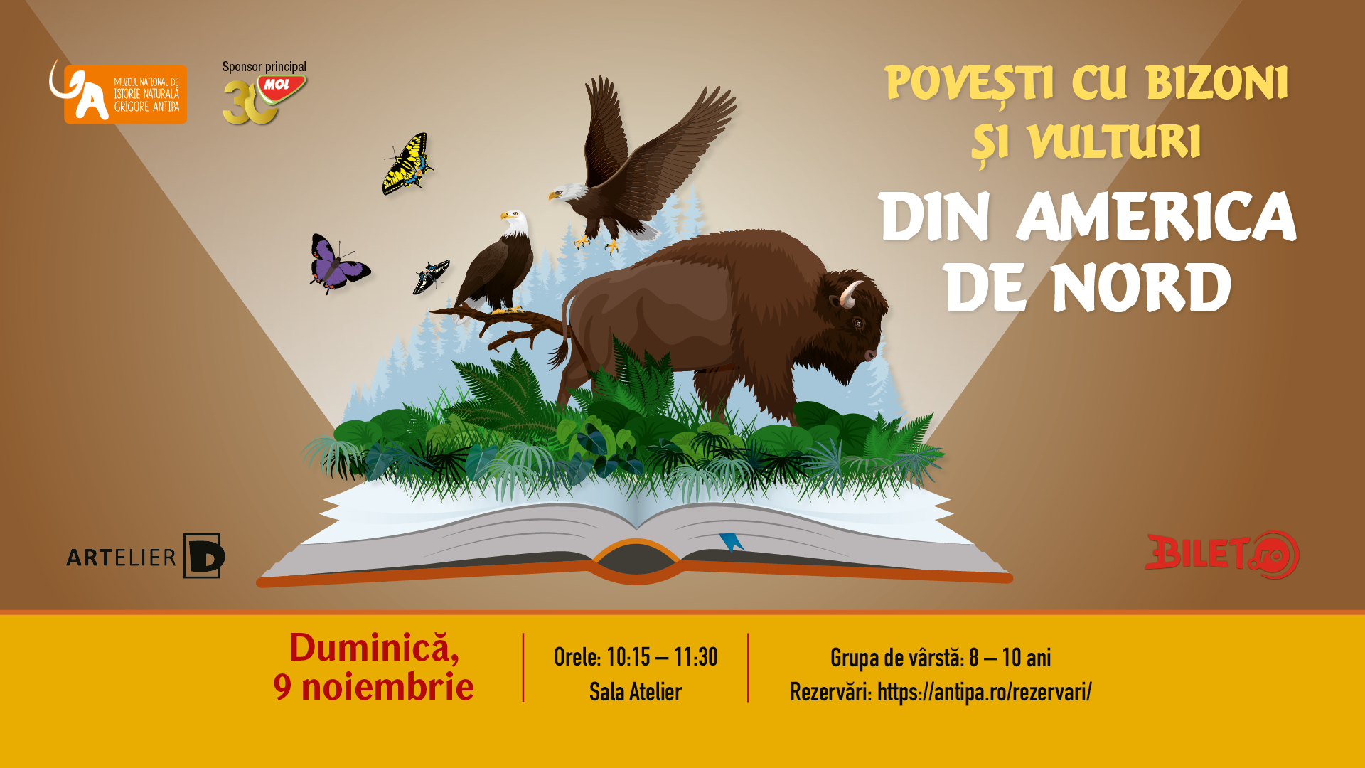 Muzeul Național de Istorie Naturală „Grigore Antipa” și Asociația „Artelier D” îi invită pe copiii cu vârste între 8 și 10 ani să participe la atelierele de lectură creativă și zoologie distractivă „Călătorie printre animale și povești”.