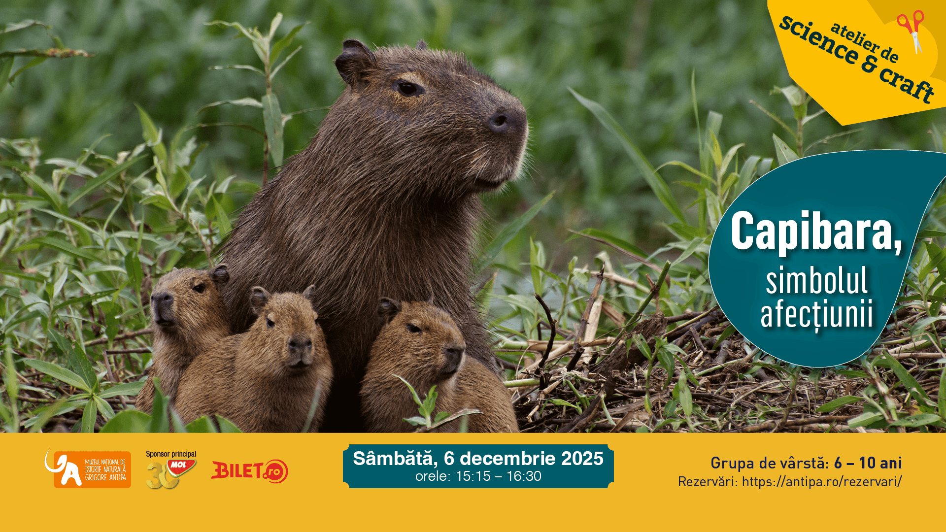 Muzeul Național de Istorie Naturală „Grigore Antipa” îi invită pe cei mici să participe la atelierul de science & craft „Capibara, simbolul afecțiunii”!