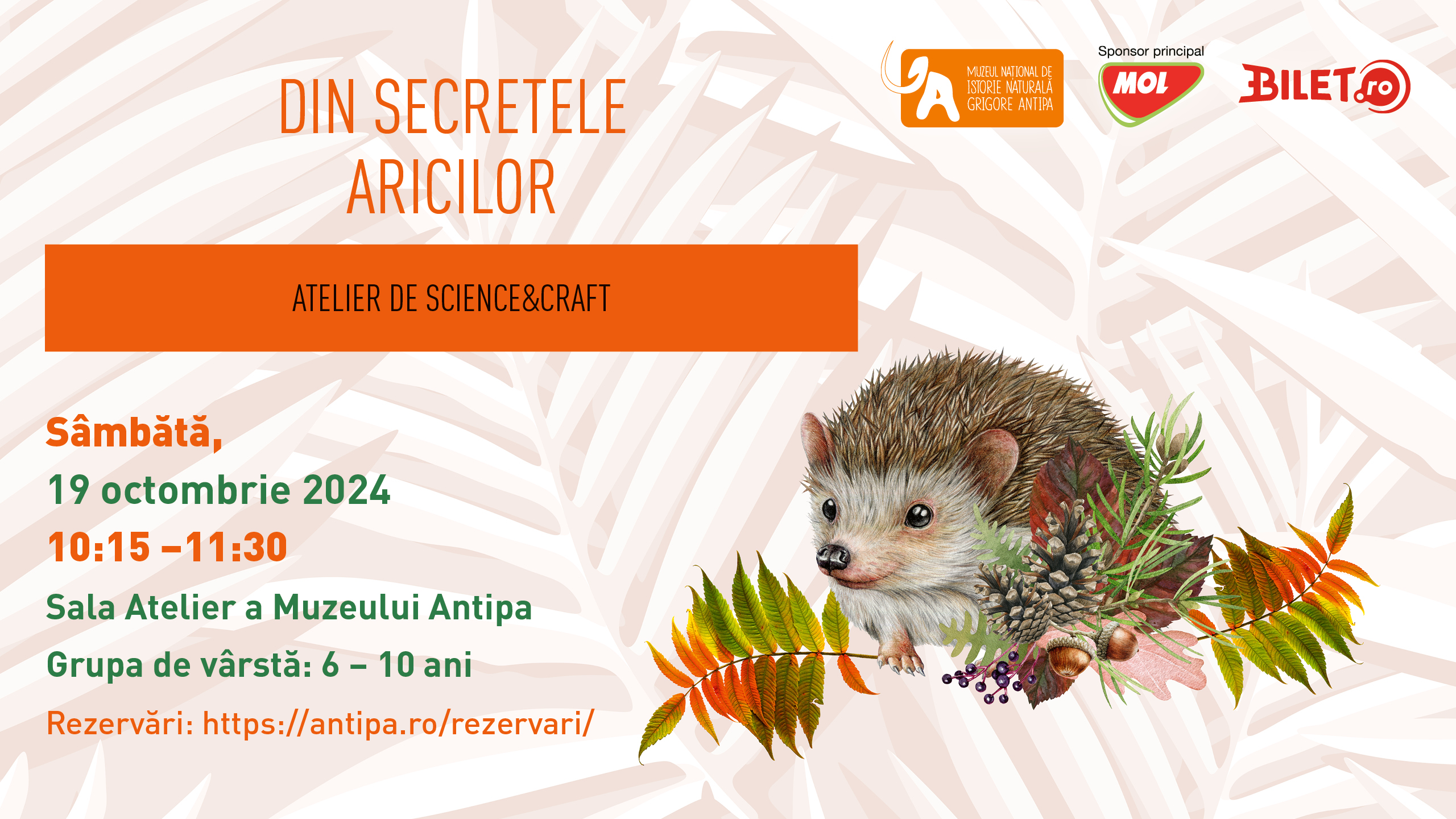 Muzeul Național de Istorie Naturală „Grigore Antipa” îi invită pe cei mici să participe la atelierul de science & craft „Din secretele aricilor”, care se va desfășura sâmbătă, 19 octombrie între orele 10:15 și 11:30.