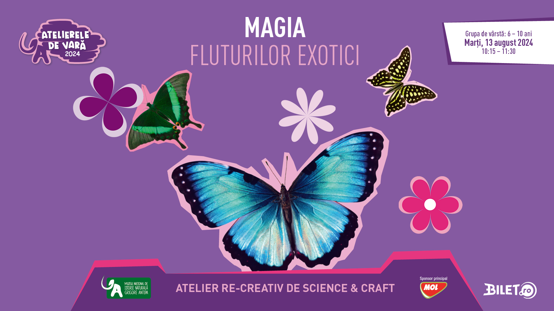 Muzeul Național de Istorie Naturală „Grigore Antipa” îi invită pe copiii activi, cu imaginație și curiozitate, la atelierele re-creative de science&craft „Magia fluturilor exotici”, care combină cu succes scurte ghidaje tematice, prezentări, jocuri și activități de lucru manual.