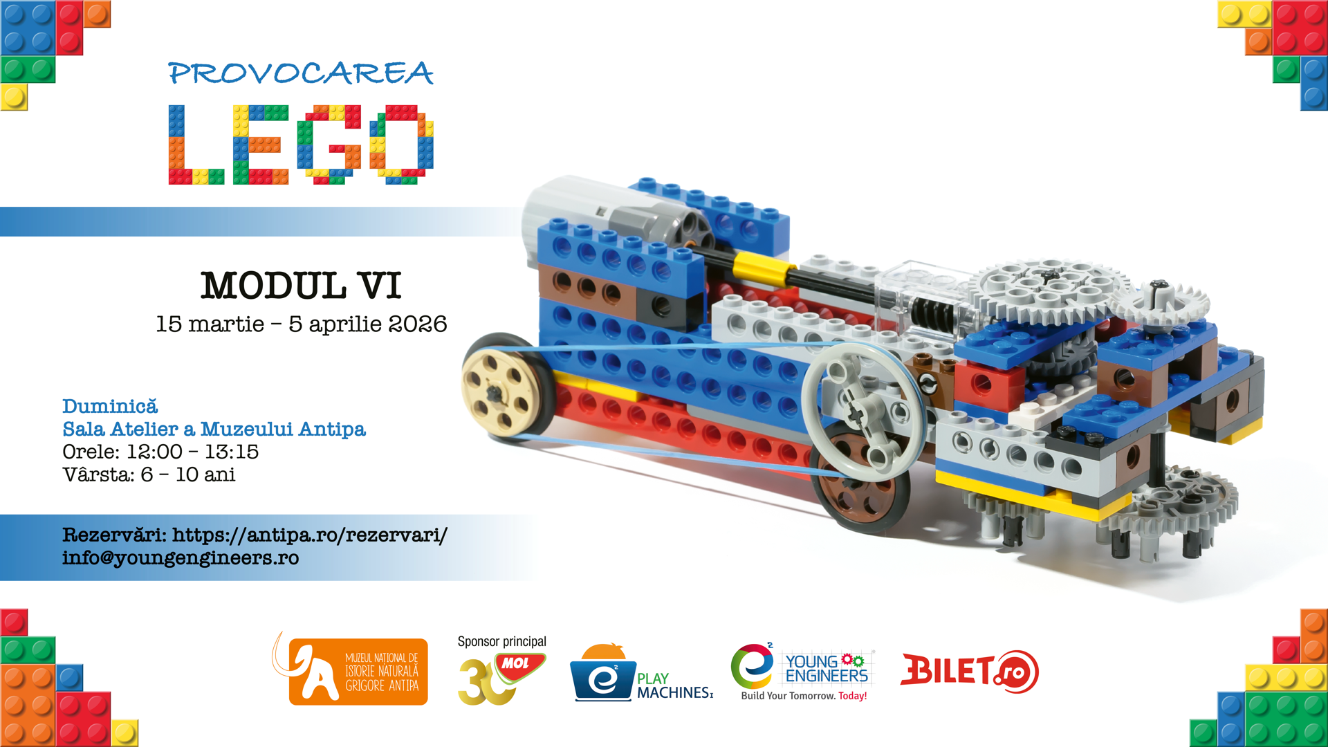 Înscrierea copiilor se face prin email la info@youngengineers.ro, la telefon 0742.102.633 sau completând formularul (https://antipa.ro/rezervari ), în limita locurilor disponibile.