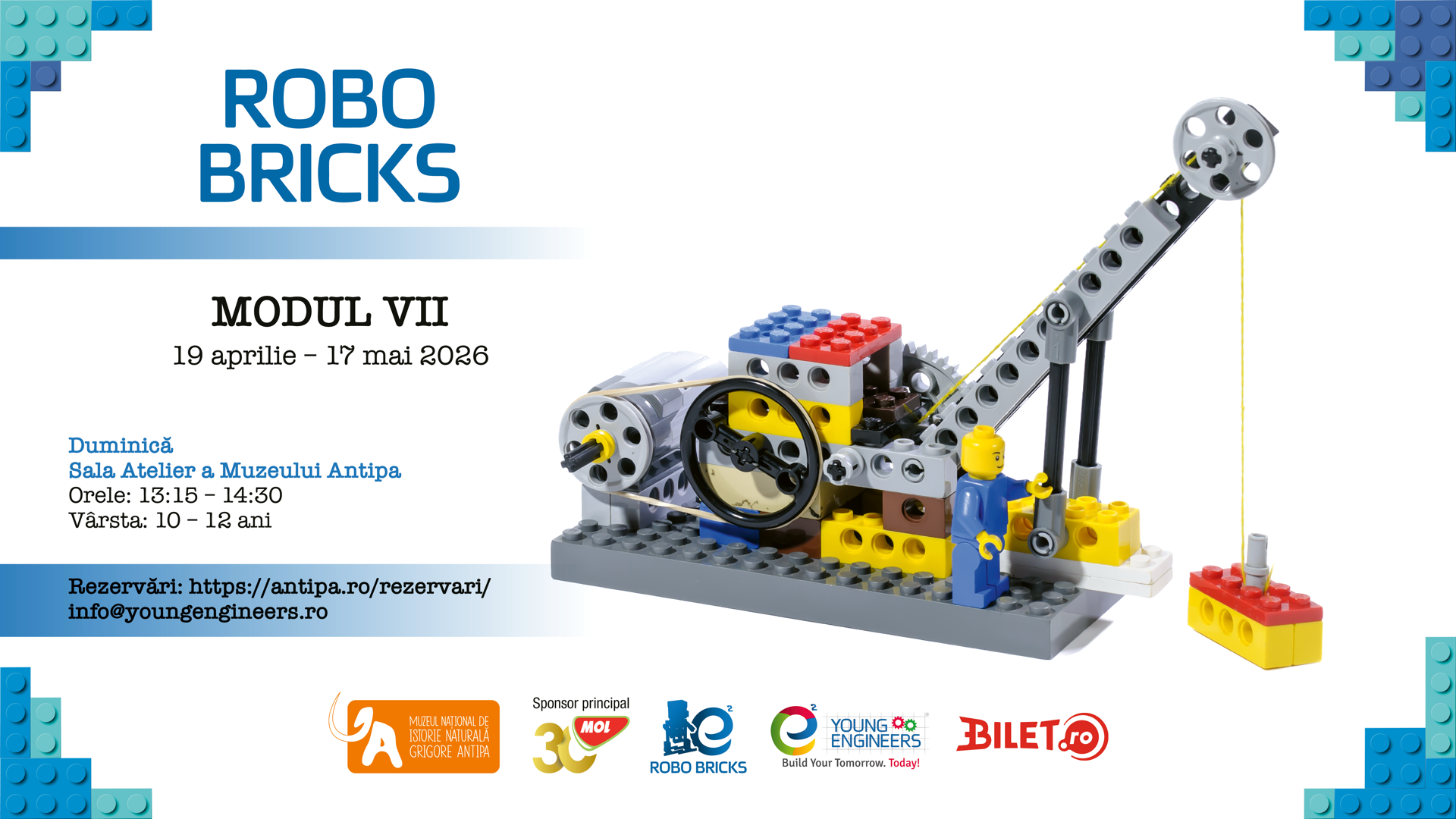 Înscrierea copiilor se face prin email la info@youngengineers.ro, la telefon 0742.102.633 sau completând formularul (https://antipa.ro/rezervari ), în limita locurilor disponibile.
