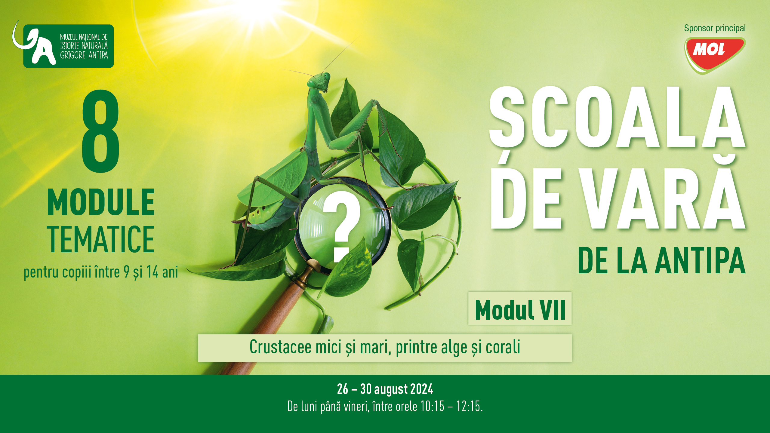 Anul acesta, Muzeul Antipa va găzdui 8 module, care vor avea loc de luni până vineri, între orele 10:15 și 12:15, atât în Sala Atelier cât și în grădina muzeului.